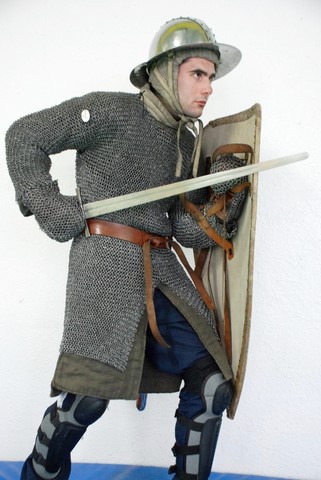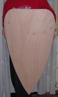 - Il faut choisir la forme de son bouclier en fonction de ce que l'on souhaite réaliser. Dans notre cas ce sera un bouclier de piéton du XIIIe siècle. La taille en fonction du porteur sera d'une hauteur mesurée de l'épaule au genoux (environ 100 cm en général) et la largeur d'environ 60cm. Faire un gabarit de la forme du bouclier dans un carton (1/2 forme suffit). Il sera conservé pour d'autres productions.