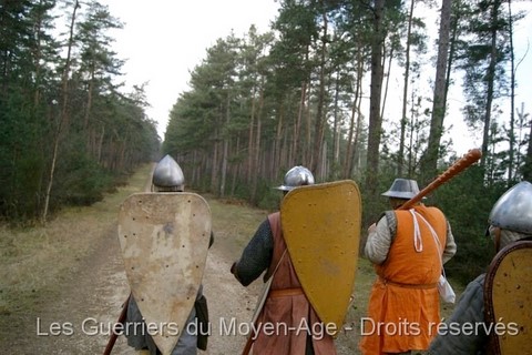 La guige passe autour du cou. Elle permet de transporter le bouclier au cours d'une marche et de le supporter plus facilement en combat.