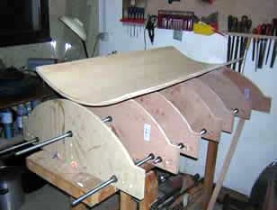 Une fois le cintrage maximal obtenu en serrant alternativement les sangles, serrer les bords avec de bons serre-joints. Ne pas hésiter à retendre les sangles et à vérifier régulièrement le dispositif.