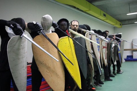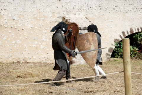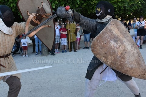 Boucliers réalisés selon la méthode exposée qui équipent notre groupe AMHE Para Bellum