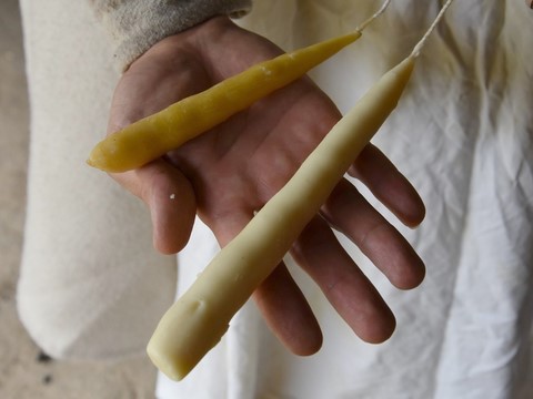 Certaines expérimentations menées par d'autres personnes comprenaient l’introduction d'un peu de cire d'abeille afin que la graisse fige plus facilement. Mais cette solution entre en contradiction avec les restrictions mentionnées dans le règlement d’Étienne Boileau. D'autres tests sont donc envisagés avec du suif de mouton.