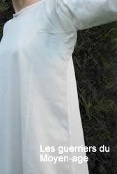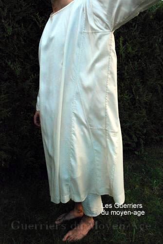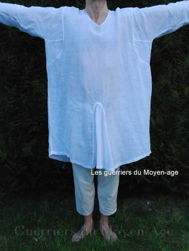 Il s'agit là d'un ensemble de deux chemises (fig. 24 à 33) portées l'une sur l'autre et sous le bliaut. Compte tenu des influences entre les costumes ecclésiastiques, impériaux et ceux de tradition byzantine, ainsi que de la pérennité de leurs formes, le choix a été fait de s'inspirer des vestiges découverts dans la tombe de l'évêque Rodrigo Ximenez de Rada, dans la nécropole de Las Huelgas. Deux pièces archéologiques ont été utilisées ici, la camisa corta (fig. 24) et la camisa mediana (fig. 25).