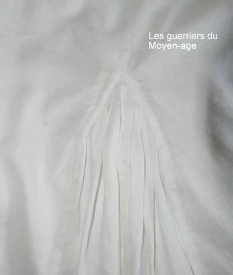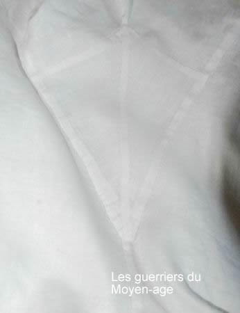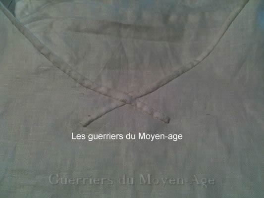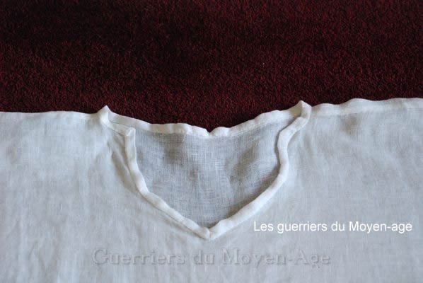 L'encolure de la chemise couche 1 est suffisamment échancrée pour ne pas dépasser de l'encolure de la cotte portée par-dessus.