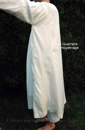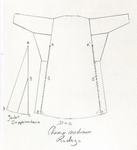 Sa réalisation s'inspire de la chemise de Saint-Louis qui a fait l'objet d'un article très précis de Tina Anderlini et Gaëlle Bernard (Moyen Age, numéro 84). La base de départ est une découpe en trapèze, dont la largeur est amplifiée par l'insertion de godets centraux. Les emmanchures présentent un arrondi anatomique.