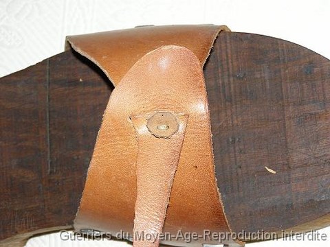 La semelle de bois comporte deux « tampons » au niveau des appuis du pied. L’un est situé sous le talon, l’autre est situé à l’avant du pied.