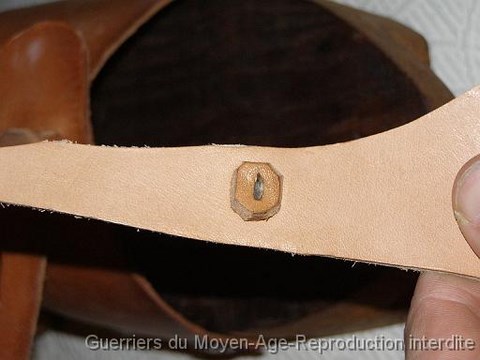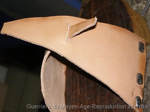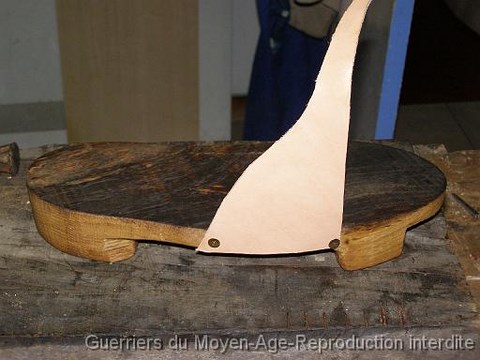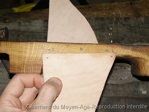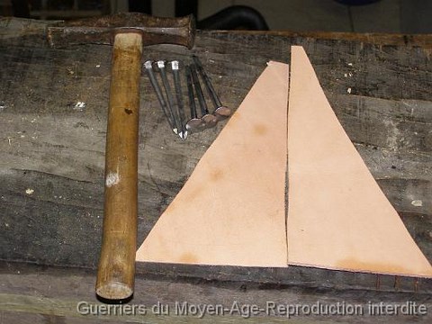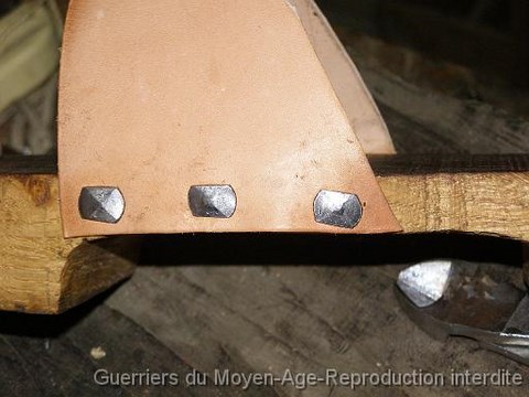 Les pièces de cuir seront clouées. Ici des clous de forge retaillés ont été utilisés.