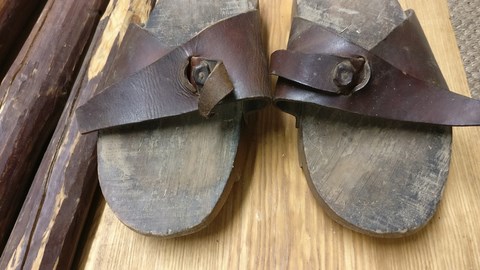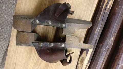 Avec un peu d'entraînement il est possible de marcher normalement. Certaines pièces archéologiques sont dotées d'un patin en fer ou de 3 patins au lieu de deux comme sur n otre réalisation.