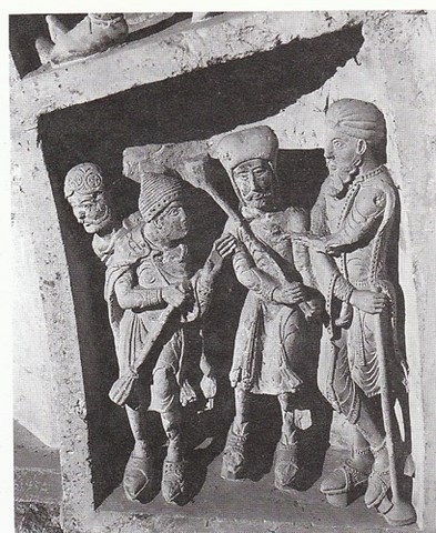 Pour cette réalisation je me suis basé sur la statuaire de l’église de Vézelay qui montre 3 personnages portant des socques de hauteurs différentes. A l'a nalyse ce sont certaionement des guerriers arméniens. Néanmoins on retrouve les socques qu'ils portent sur plusieurs représentations moins typées, ce qui en valide le principe.
